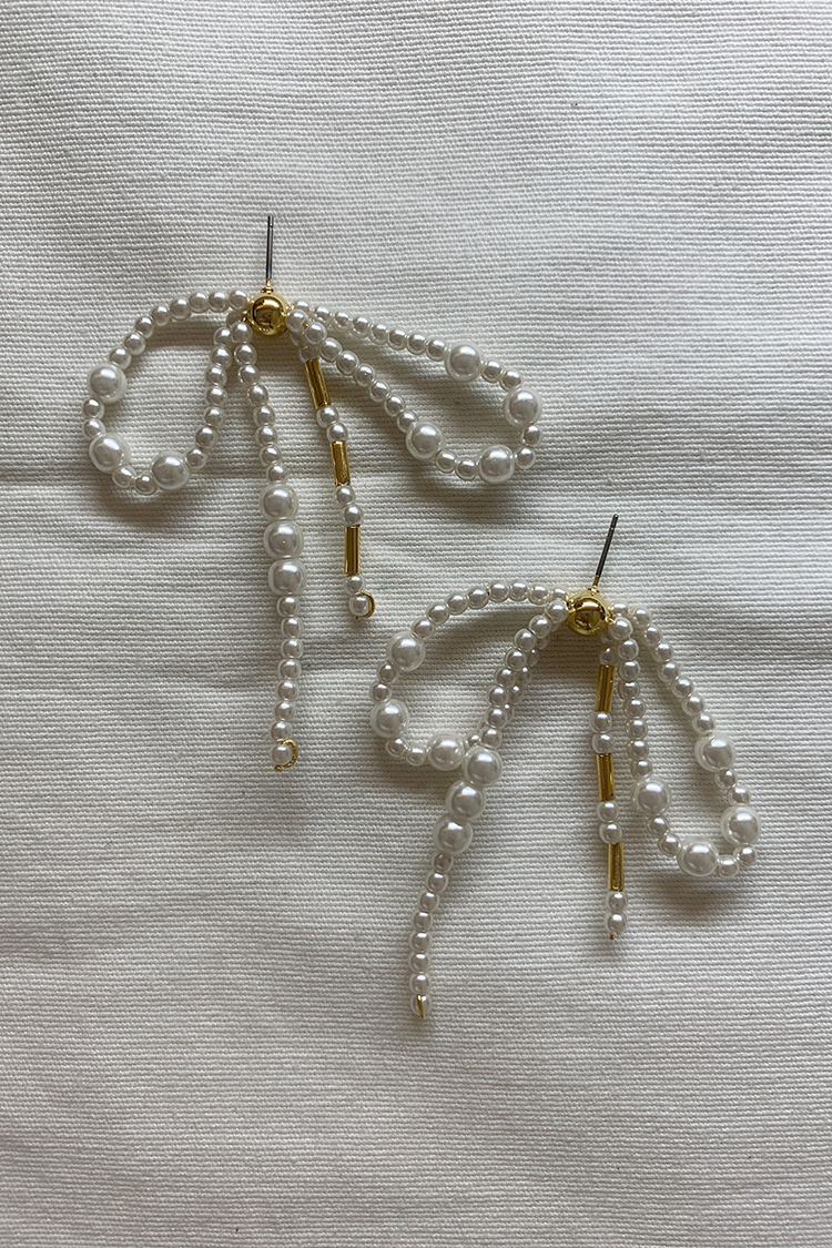 珍珠蝴蝶結垂墜耳環