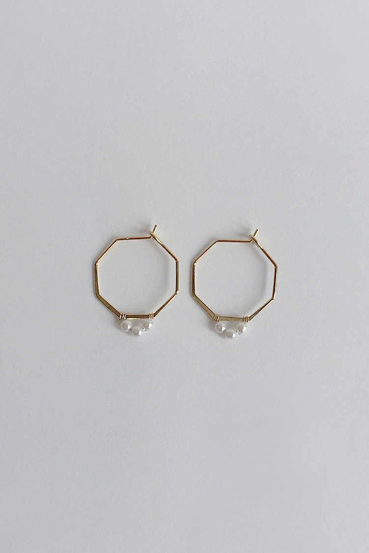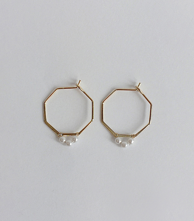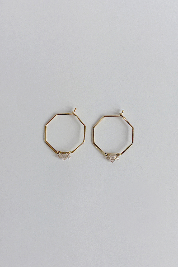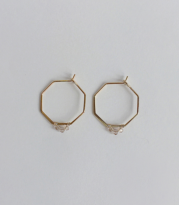 六邊形天然石圈圈耳環