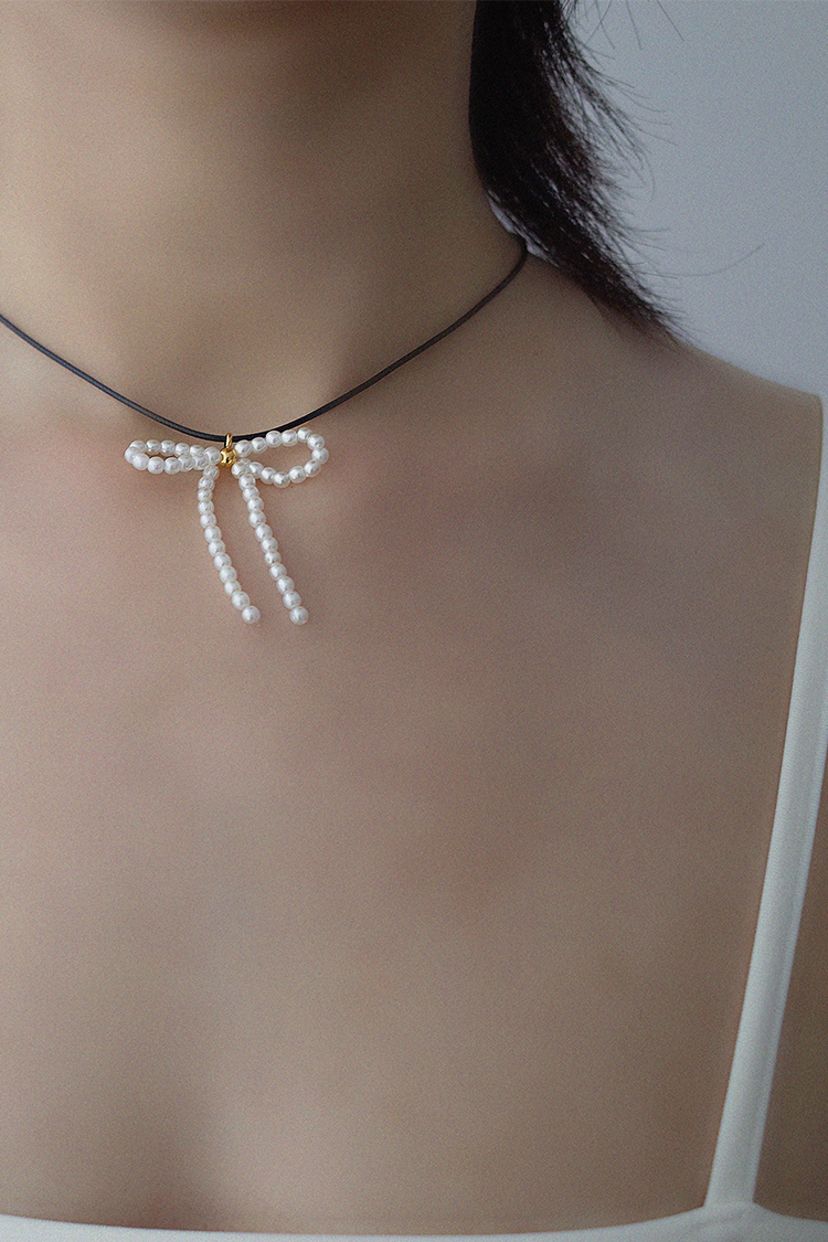 珍珠蝴蝶結短鍊